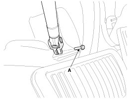 19. Remove the steering u-joint mounting bolt (A).
