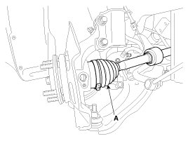 23. Disconnect the drive shafts (A) from the axle hubs.
