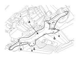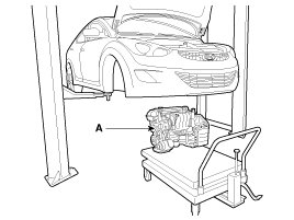 26. Support the sub frame (A) with a floor jack, and then remove the sub frame mounting bolts and nuts.