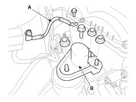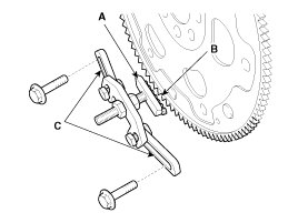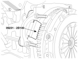 - Install the SST (09231-2B100) to hold the ring gear after removing the starter.