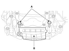 2. Remove the two transaxle mounting bolts (A) and the service cover (B) on the bottom of the lower crankcase.