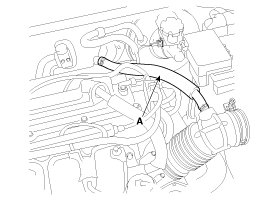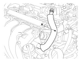 7. Disconnect the PCV (Positive crankcase ventilation) hose (A).