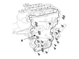 19. Remove the timing chain cover (A) by gently prying the gaps between the cylinder head and cylinder block.