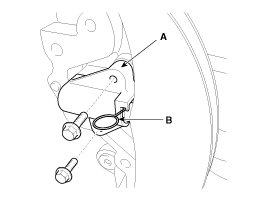 Compress the piston and then insert a stopper pin (B) into the slot to hold the compressed piston.