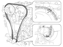 The timing marks of each sprocket should be matched with timing marks (color link) of timing chain when installing the timing chain.