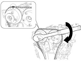 (2) Install the timing chain on the exhaust CVVT sprocket with no slack while turning the CVVT assembly clockwise.