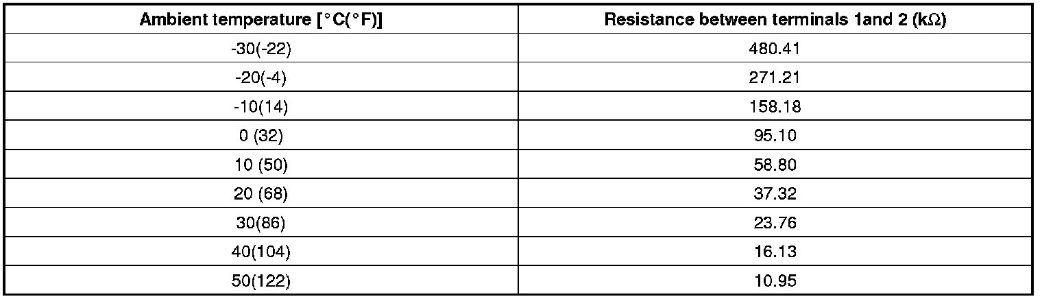 3. Check the resistance of ambient temperature sensor between terminals 1 and 2 whether it is changed by changing of the ambient temperature.