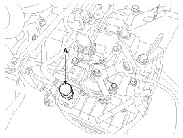 6. Lift the vehicle, then remove the oil level plug (A) from the valve body cover.