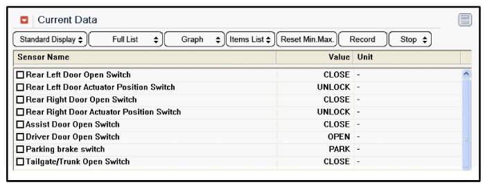 3. To consult the present input/out value of SJB, "Current DATA". It provides information of SJB input/output conditions.