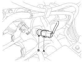 2. Disconnect the engine coolant temperature sensor connector (A).