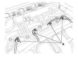 2. Disconnect the ignition coil connectors (A).