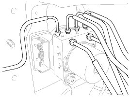 4. Disconnect the brake tubes from the HECU by unlocking the nuts counterclockwise with a spanner.