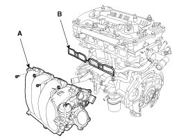 Remove the intake manifold (A) with the gasket (B).