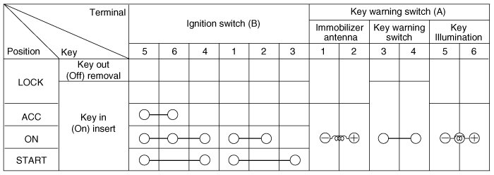 1. Disconnect the ignition switch connector (B) and key warning switch connector (A) from the steering column.