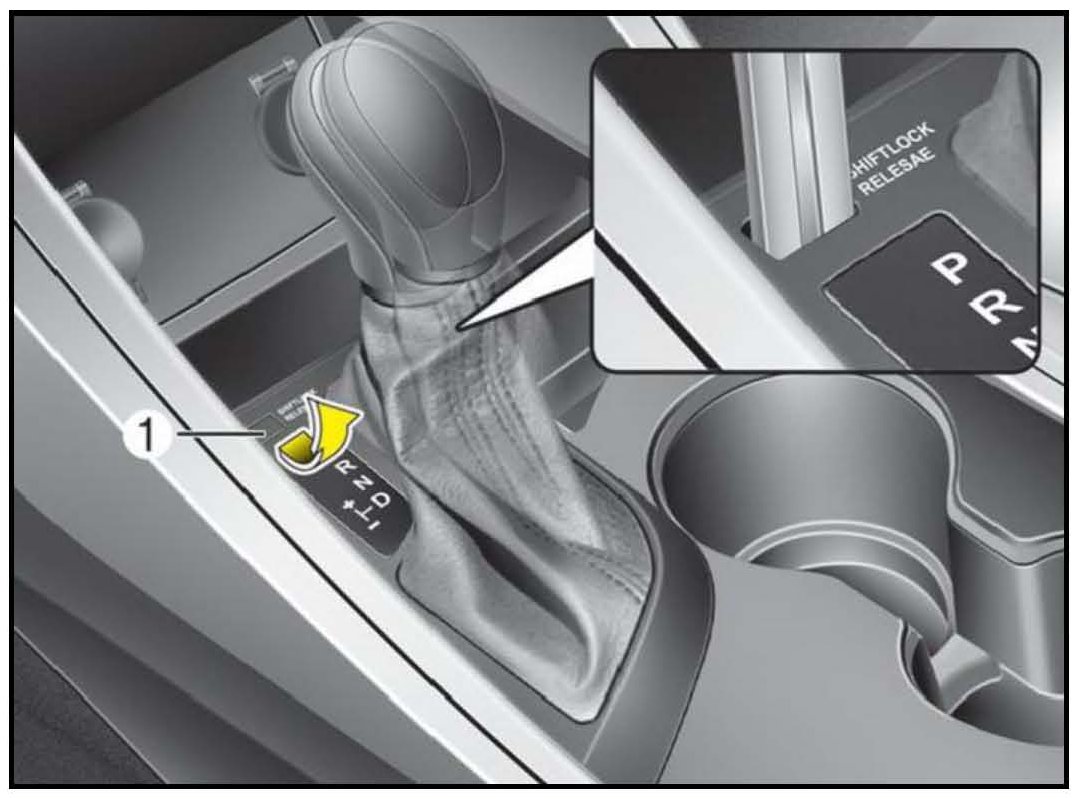 3. Use the ignition key or a screwdriver to engage the shift-lock override. Move the shift lever through all gear positions to confirm that it operates properly.