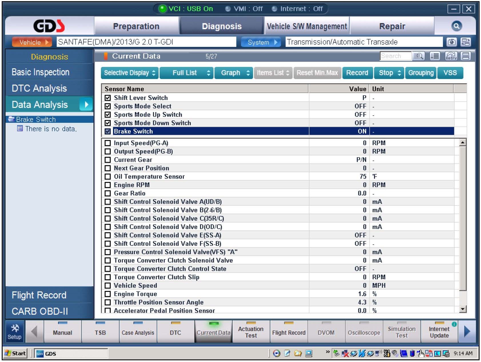 5. From the GDS, select the following parameters from the "Current Data menu and confirm proper operation.