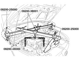 8. Using the engine support fixture (SST No.: 09200-38001), hold the engine and transaxle assembly safely.