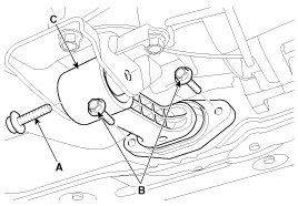 4. Remove the control cable (C) after removing the nut (A) and the bolt (B).