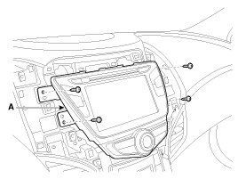 5. Remove the heater and air conditioner controller(A) with 4 screws.