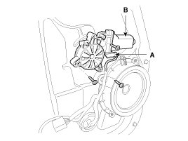 3. After loosening the mounting screws, then remove the power window motor (B).