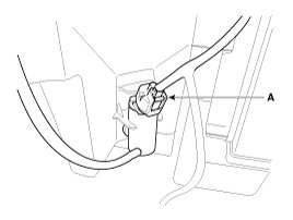 3. Remove the washer hose and disconnect the washer motor connector (A).