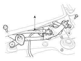 7. Remove the windshield wiper motor and linkage assembly (A) after removing 2 bolts.
