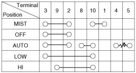 Check for continuity between the terminals while operating the wiper and washer switch. If it is not normal condition, replace wiper and wiper switch.