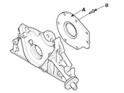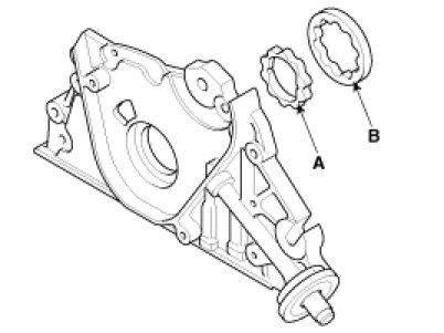 (2) Install the oil pump cover (A) to front case with the 7 screws(B).