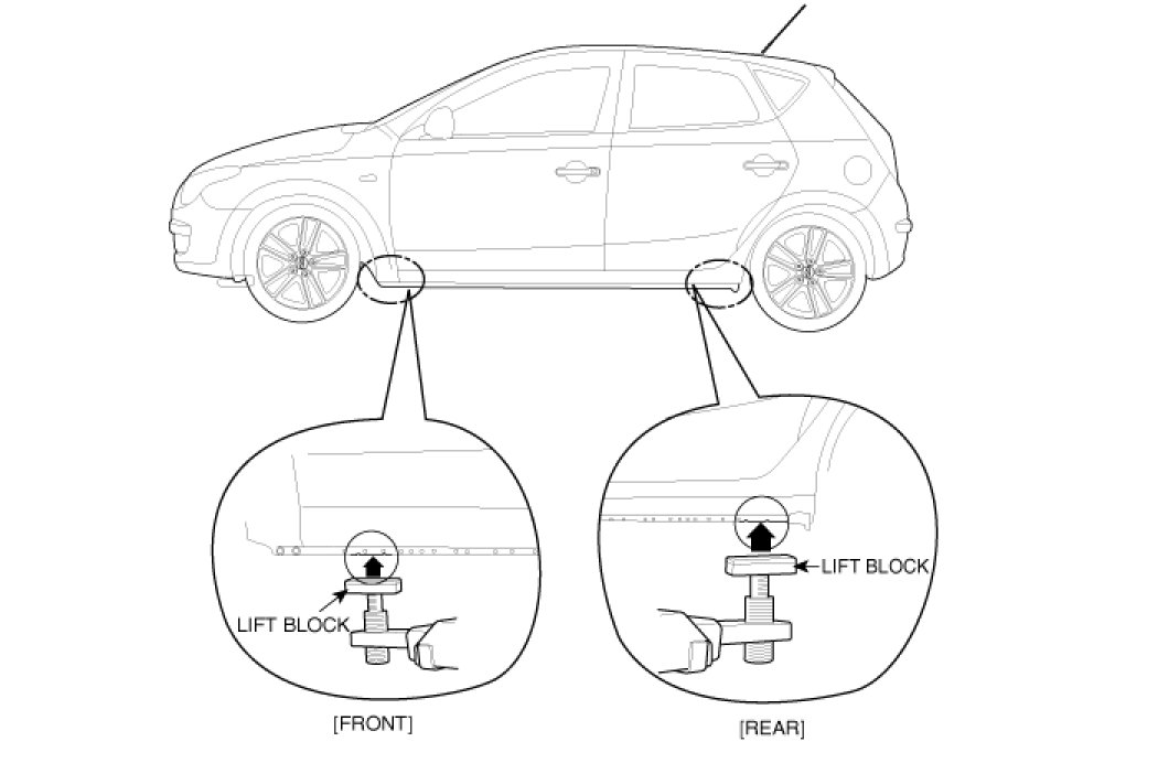 2. Raise the hoist a few inches (centimeters) and rock the vehicle to be sure it is firmly supported.