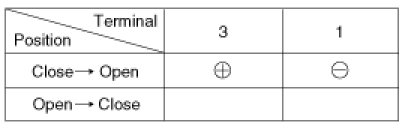 4. Check actuator operation by connecting power and ground according to the table. To prevent damage to the actuator, apply battery voltage only momentarily.