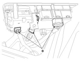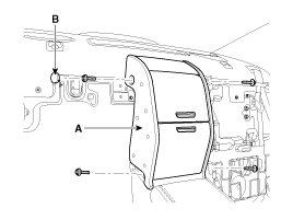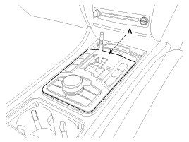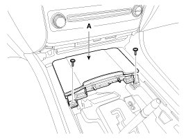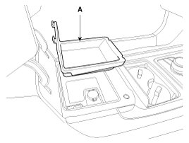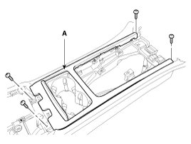 7. Loosen the console mounting screws, remove the floor console upper tray (A).