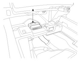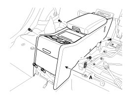 6. After loosening the mounting bolts, then remove the rear floor console complete assembly (A).