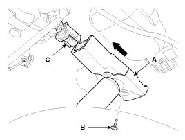 1. Using a screwdriver, then remove the ECM mirror cover (A).