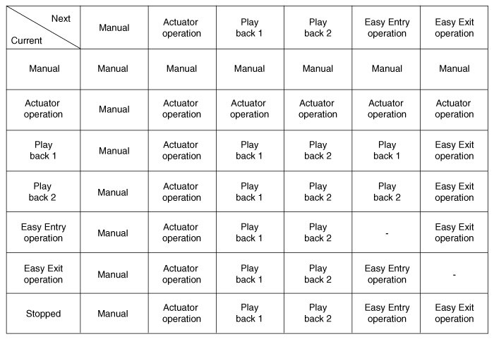 Tilt & Telescope function is carried out according to the following priority table. If Tilt & Telescope requirement happen same time.