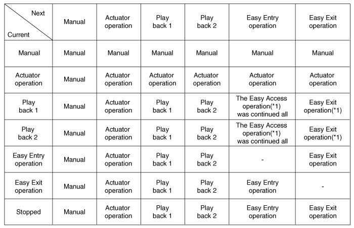 Power seat function is carried out according to the following priority table, If power seat requirement happen same time.