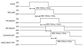 A. Manual Switches ON (Slide Front/Rear , Recline Front/Rear, Front Height Up/Down, Rear Height Up/Down, Head Rest Up/Down , Cushion Extention Front/Rear)