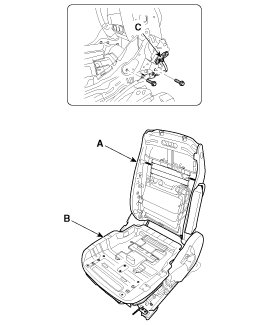 5. After loosening the mounting bolts, then disconnect the seat back frame (A) and seat cushion frame (B).