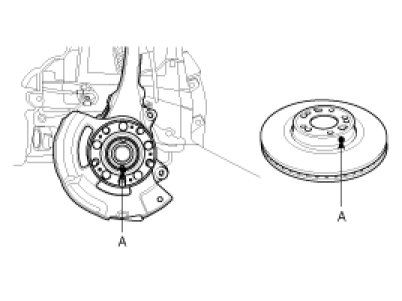 4. When installing brake disc, runout peak point markings (A) on disc and hub must be as close as possible (within 72° range).