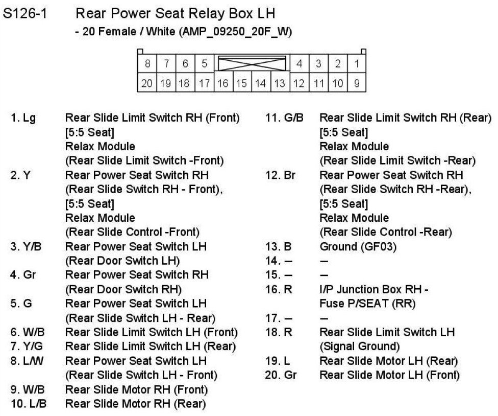 S126-1 Rear Power Seat Relay Box LH: