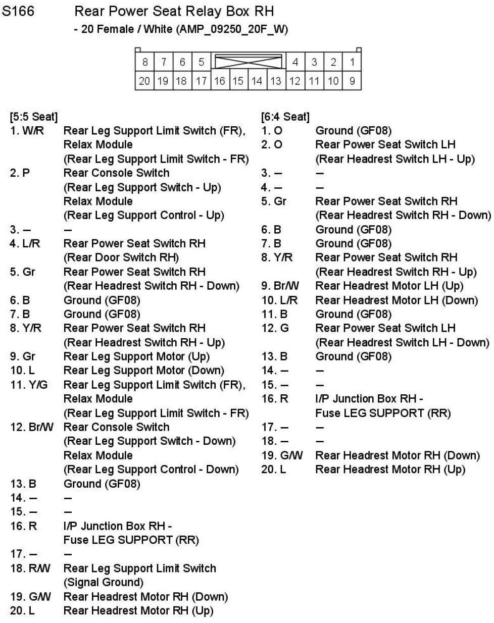 S166 Rear Power Seat Relay Box RH: