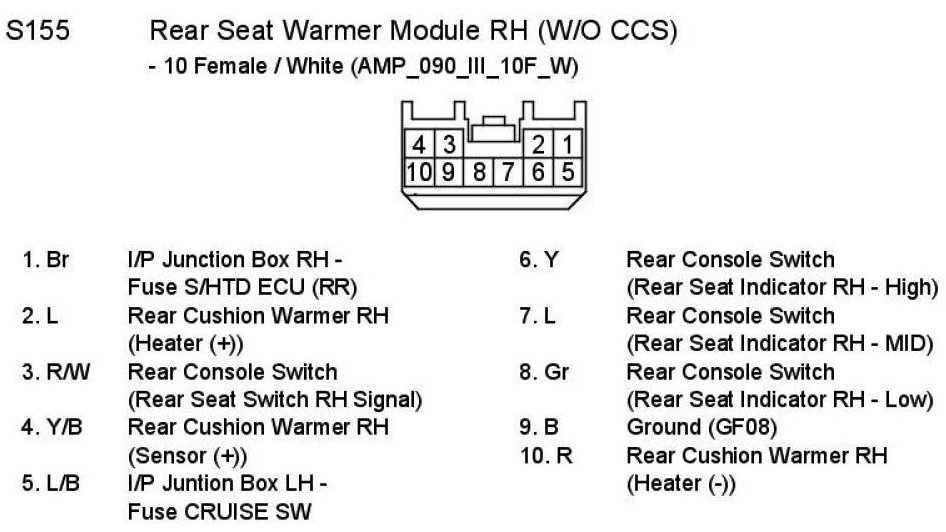 S155 Rear Seat Warmer Module RH (W/O CCS):