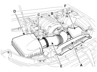 (4) Remove the resonator (F), the intake air hose (E) and air cleaner assembly (D).