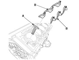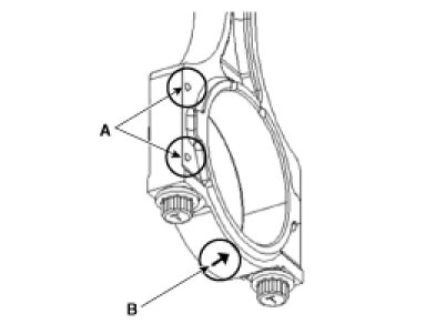 - The piston front mark (A) and the connecting rod front mark (B) must face the timing chain side of the engine.