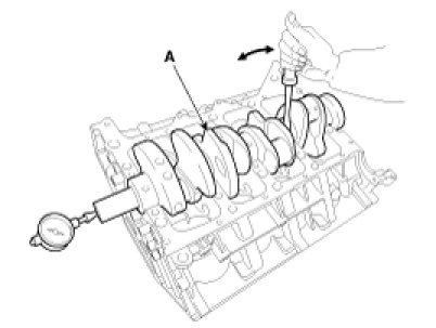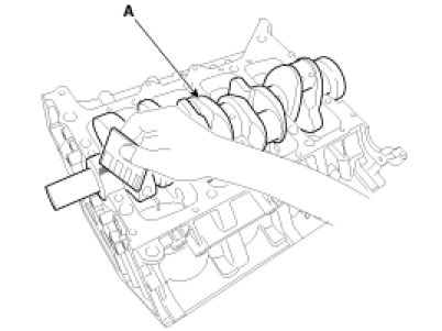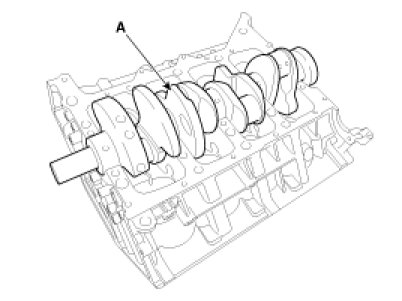 19. Lift the crankshaft (A) out of engine, being careful not to damage journals.