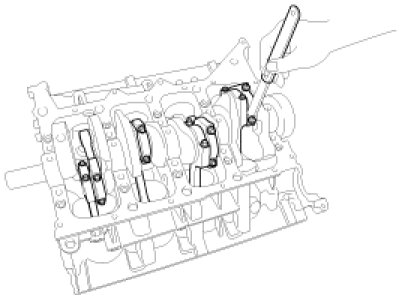 (3) Apply engine oil to the bolt threads. Install the rod caps with bearings, and torque the bolts.