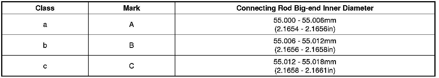 If the proper clearance cannot be obtained by using the appropriate larger or smaller bearings, replace the crankshaft and start over.
