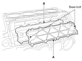 - When applying sealant gasket, sealant must not protrude into the inside of cylinder block.
