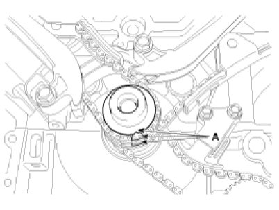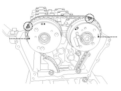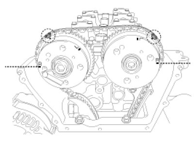 To install the timing chain with no slack between each shaft (cam, crank), follow the below procedure.