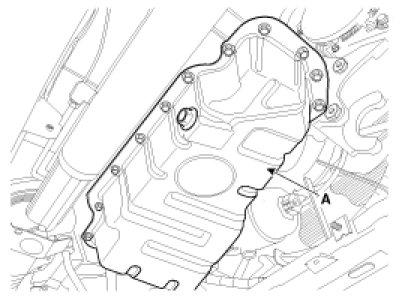 10. Remove the lower oil pan(A).