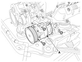 23. Install the air conditioner compressor (A).